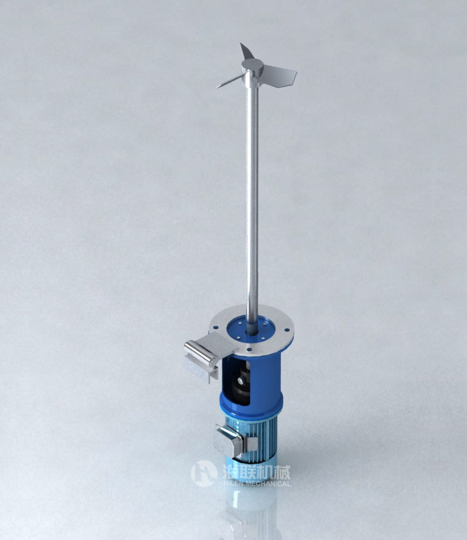 折葉式攪拌器 根據(jù)不同介質(zhì)的物理學(xué)性質(zhì)、容量、攪拌目的選擇相應(yīng)的攪拌器,對促進化學(xué)反應(yīng)速度、提高 效率能起到很大的作用。折葉式攪拌機適用于給水和排水工程中的混合池,反應(yīng)池原水與各種藥劑的混合及反映過程的攪拌,攪拌轉(zhuǎn)數(shù)一般在30-1400r/min。攪拌時能使物料在反應(yīng)釜內(nèi)循環(huán)流動,所起作用以容積循環(huán)為主,剪切作用較小,上下翻騰效果良好。當(dāng)需要有更大的流速時,反應(yīng)釜內(nèi)設(shè)有導(dǎo)流筒。